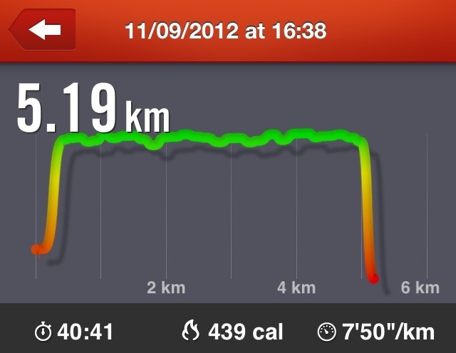 10 minutes in and the sweat was pouring off me but I kept going. The distance recorded by the treadmill and iSmoothRun were slightly different but I focused on my usual trusty app and kept going.