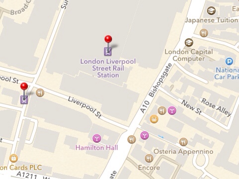 The map would not find my location nor would it find Liverpool Street Station (I had full signal). In fact after several attempts it still hasn't found Liverpool Street and I am currently there sat on the train!