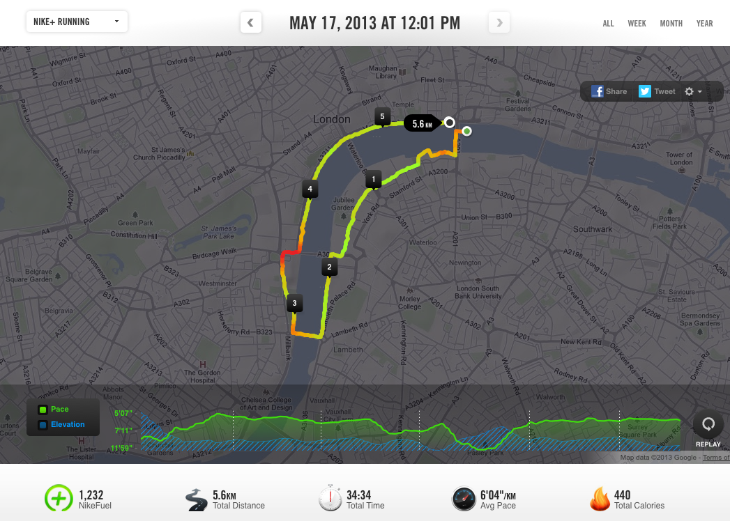 I went on another lunchtime time run with Paul today and we extended our route to Lambeth Bridge. This added about 1.5K onto the run we completed last Friday.
