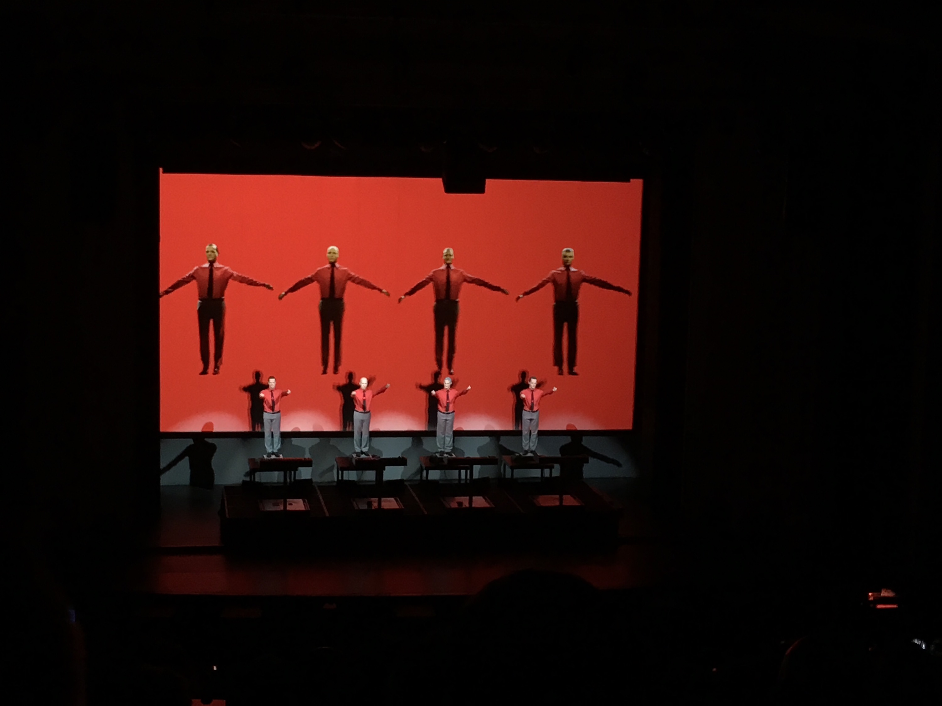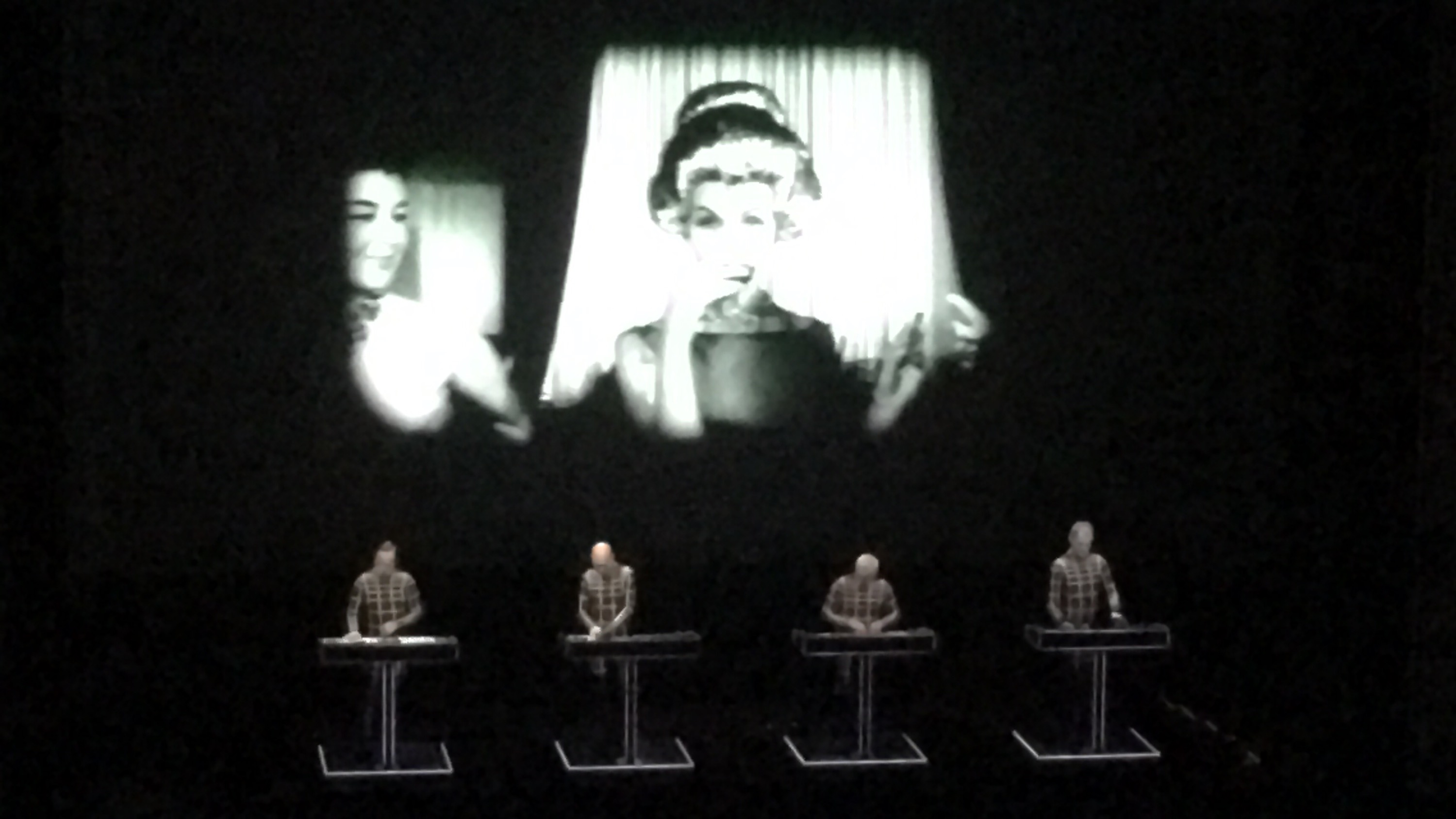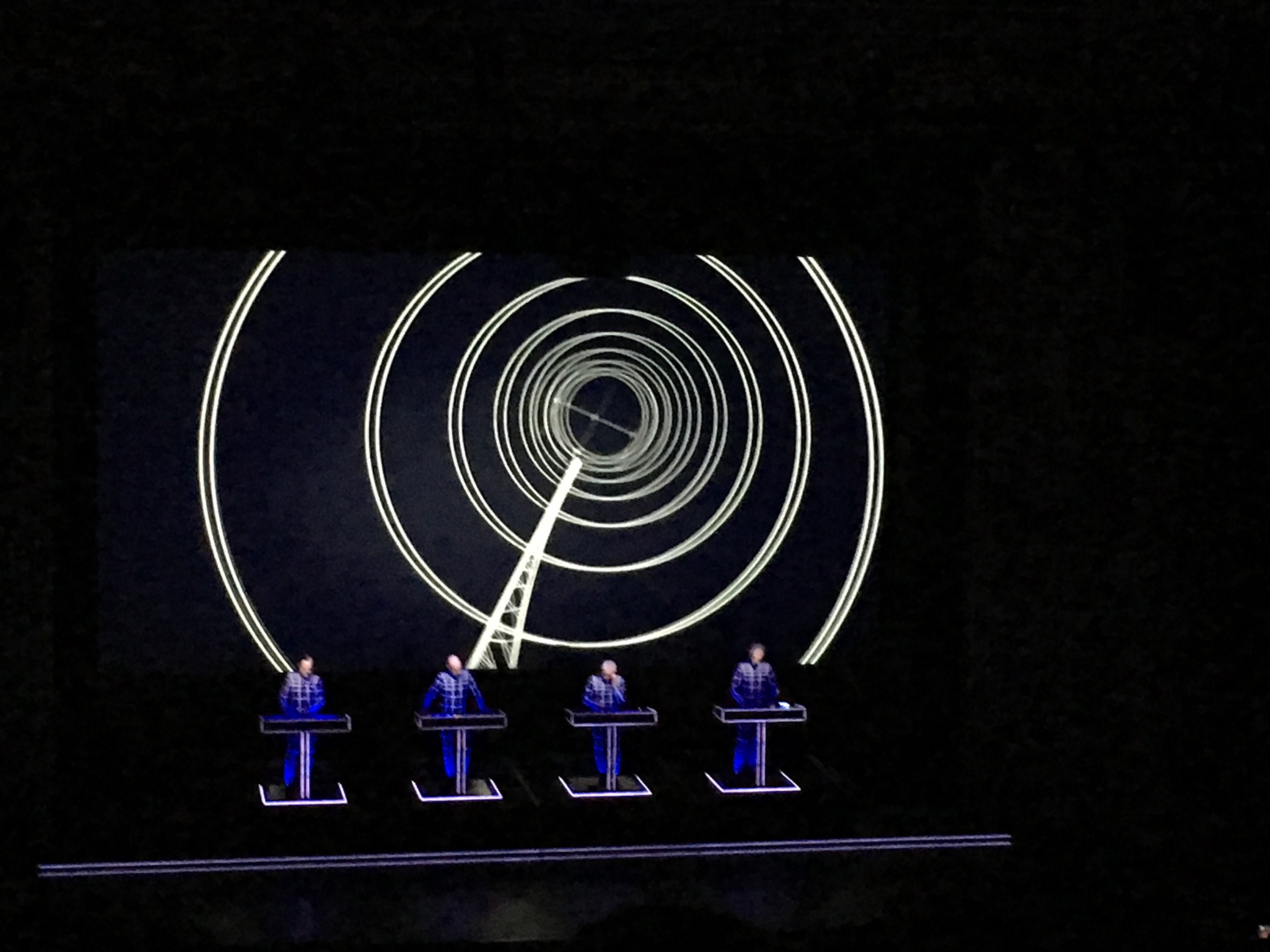 The photos do not capture the 3D show which accompanied the set which seemed to leap into the auditorium or envelope Kraftwerk during their performance. very clever.