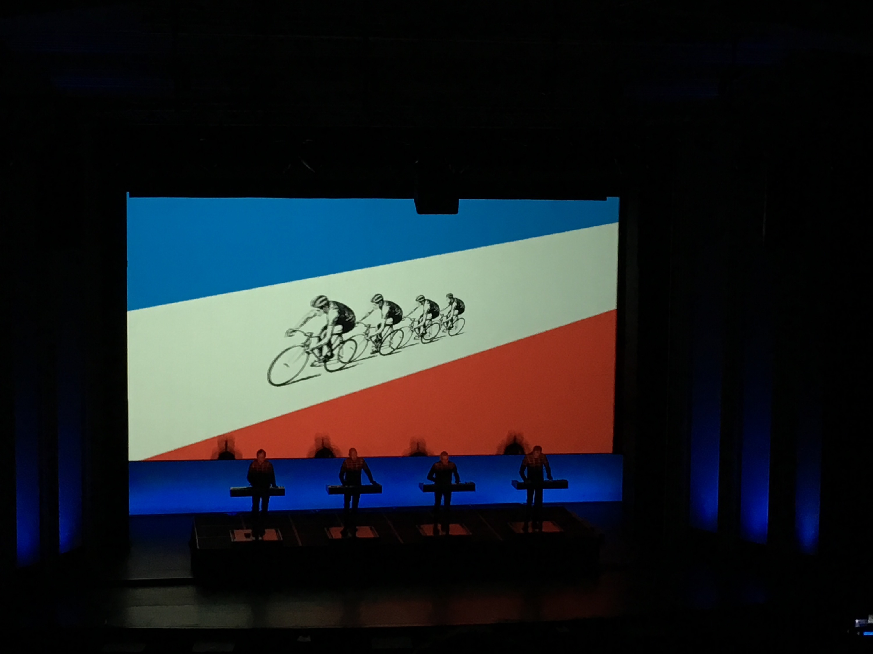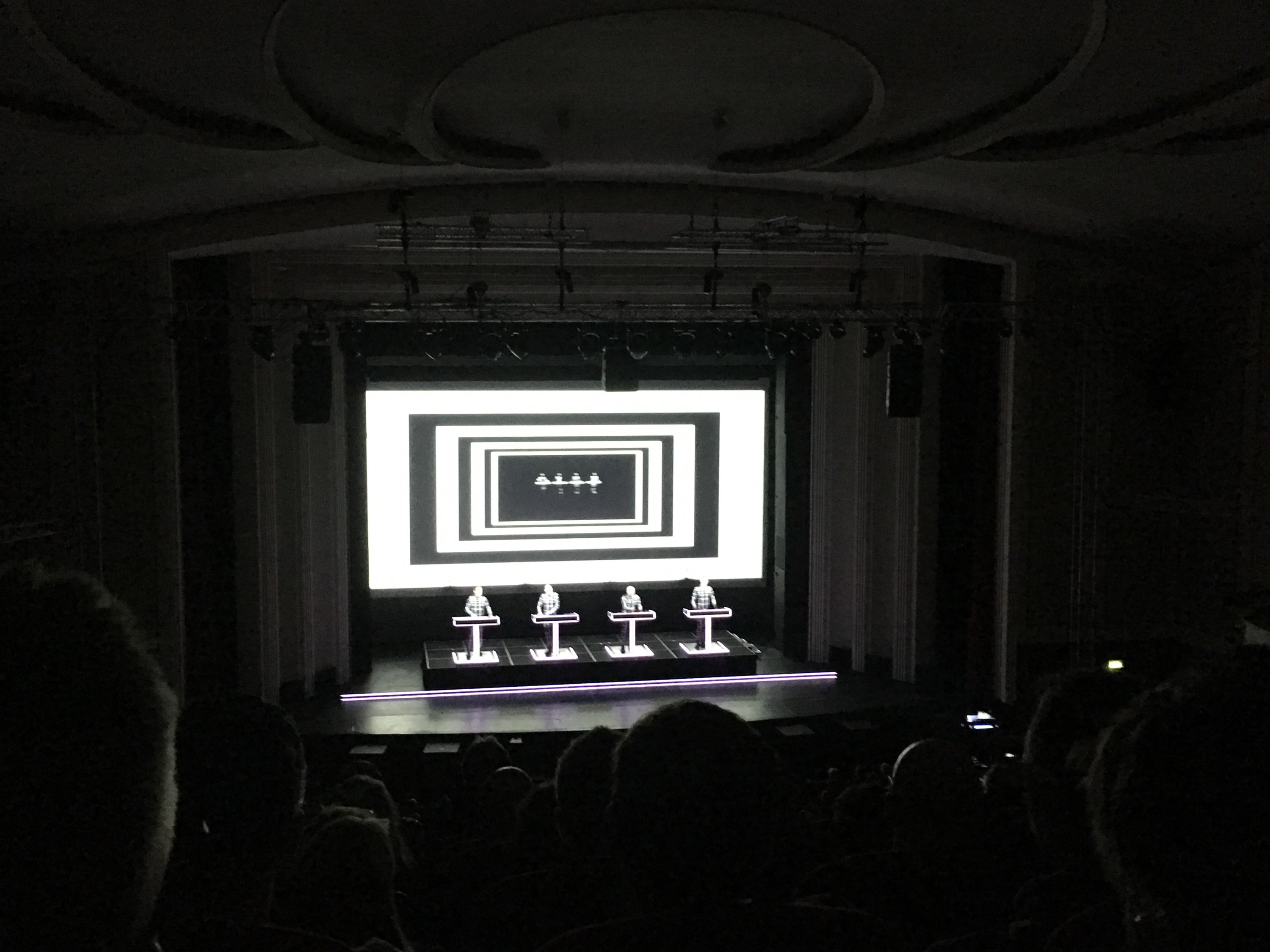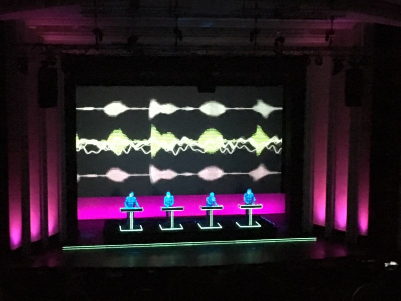 The photos do not capture the 3D show which accompanied the set which seemed to leap into the auditorium or envelope Kraftwerk during their performance. very clever.