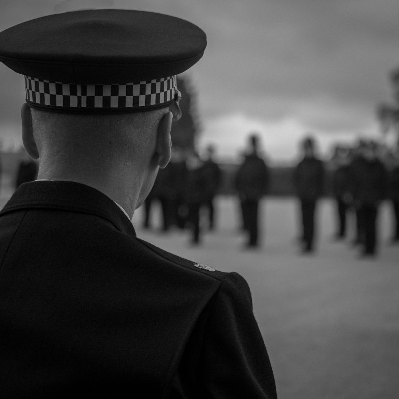 I was taken by this view of the Chief Constable watching the new recruits as they embark on their new life in the force.