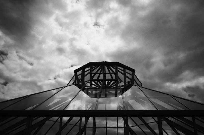 I noticed the strong lines of the structure of the vegetable conservatory and the sky was quite brooding.