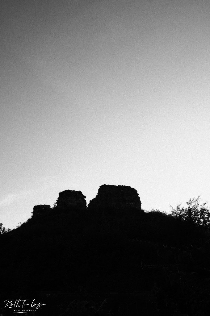I took a number of shots in colour to capture the sunset but really like this mono shot of the silhouette of Plympton Castle.