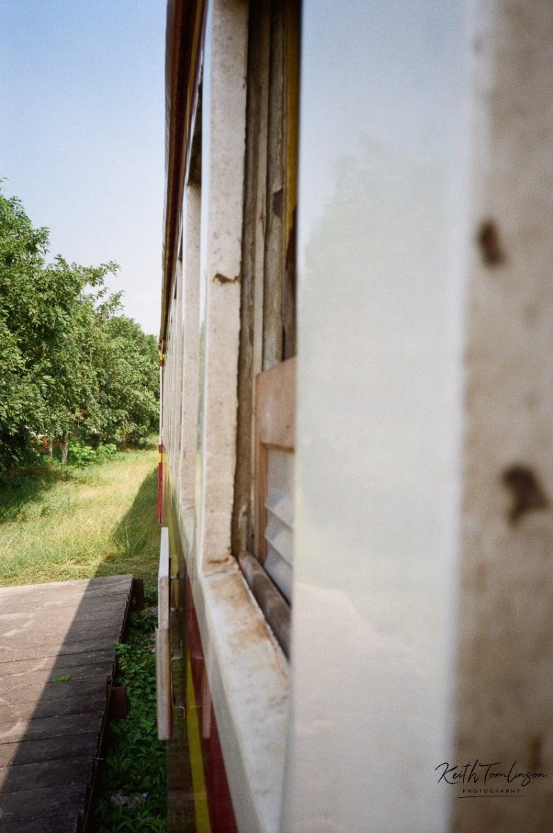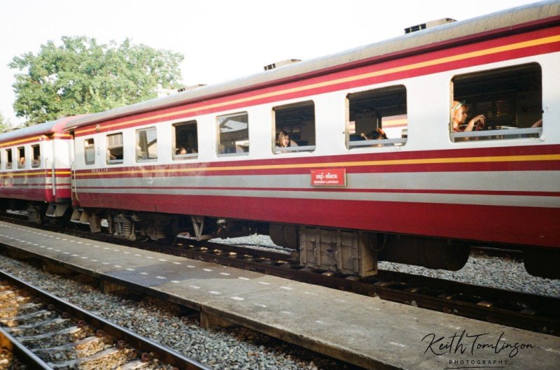 Two shot whilst in motion. One was pulling into a station and another where I tried to capture the traffic we held up and the chaos the train caused to the normal everyday rhythm of Thai life.